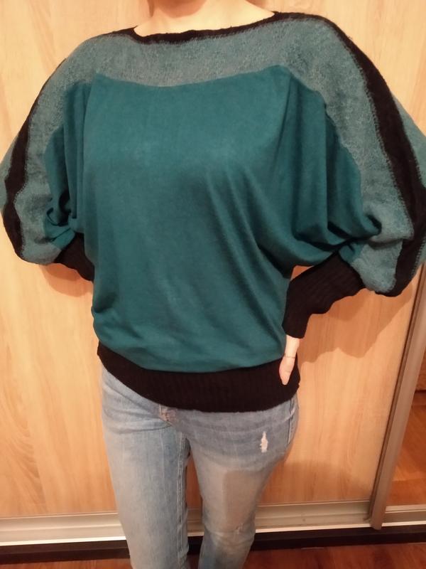 Зручна кофта з рукавами "літучої миши". Розмір S, але може підійти і на М. Довжина від плеча 62см, довжина рукава - 68 см.