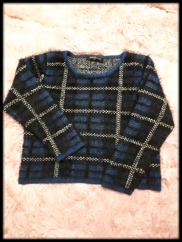 Красивый свитер благородного синего цвета с актуальной клеткой. Указан размер l...подойдет на s, m как оверсайз