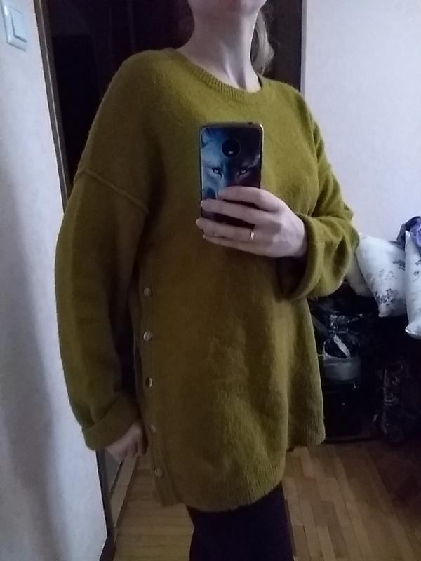 модный свитер ,по бокам с заклёпками,цвет горчичный
