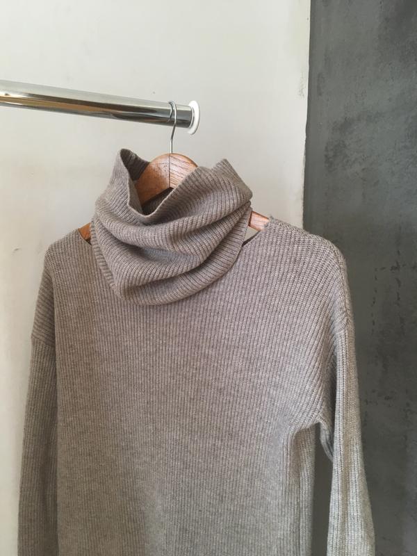Тёплый, стильный, удлиненный свитер в рубчик Съемный ворот-шарф Размер : М Состояние : Идеальное