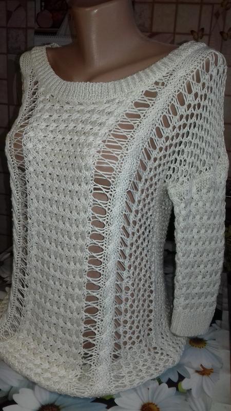Ажурний светр від Cherokee, зі спущеними плечима. довжина виробу - 62cm, плечі - 58 см, ПОГ - 46см, довжина рукава - 28см (завмер від початку плеча) ширина по низу - 45см. Підходить для нашого 40/42/44 розміру. Колір між бежевим і "пряженим молоком". Якщо любите носити oversize - можна на менший розмір. Орієнтуйтеся на заміри.