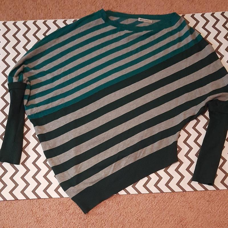 Свитер в отличном состоянии.Носиться с приспущеным плечем и чуть наискось на бедрах.