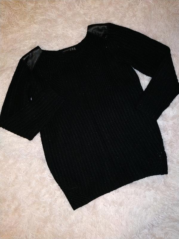 Свитер с кожаными плечами