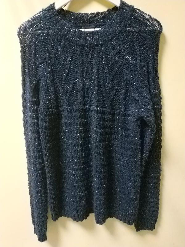 Светр темно-синього кольору з додаванням люрексовою нитки,розмір XL. (ПОГ-55см,рукав від горловины81см,довжина 68 см)
