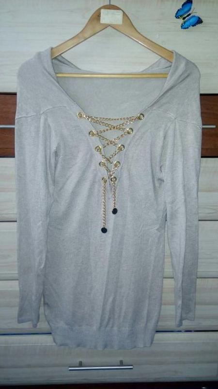 Красивая оригинальная кофточка с цепочкой на спине. Размер М. Цвет бежевый. Одевалась пару раз, состояние отличное. Единственный минус- на рукаве маленький шовчик от дырочки. Это я так ее и купила в интернет- магазине. При носке не заметно.