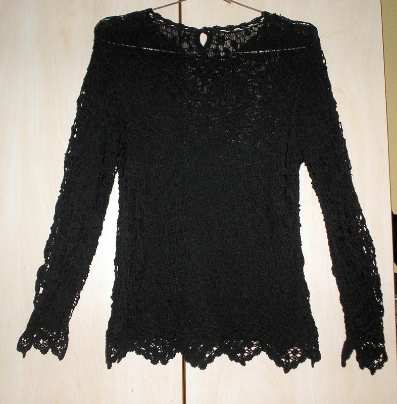 Кофточка ажурная, S, б. у. В отличном состоянии. Сверху ажурная, а под неё подшита токая облегающая кофточка с длинным рукавом из того же материала. На спинке застёгивается на пуговку. Замеры: ПОГ - 40 см Длина - 60 см длина рукава - 60 см