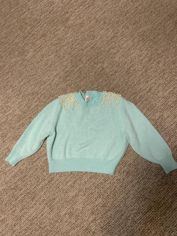 Очень красивая кофточка с жемчугом, тёплая и пушистая, материал ангора. Цвет просто бесподобный мятный!!! Укорочённая!