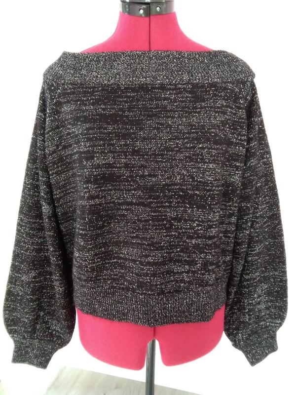 черный , оверсайз с люриксовой нитью . длина 50 см, дл.рукава от горловины 64 см, п.шир. по низу 47.5, п.ш. груди 61 см п.ш.горловины 44.5.