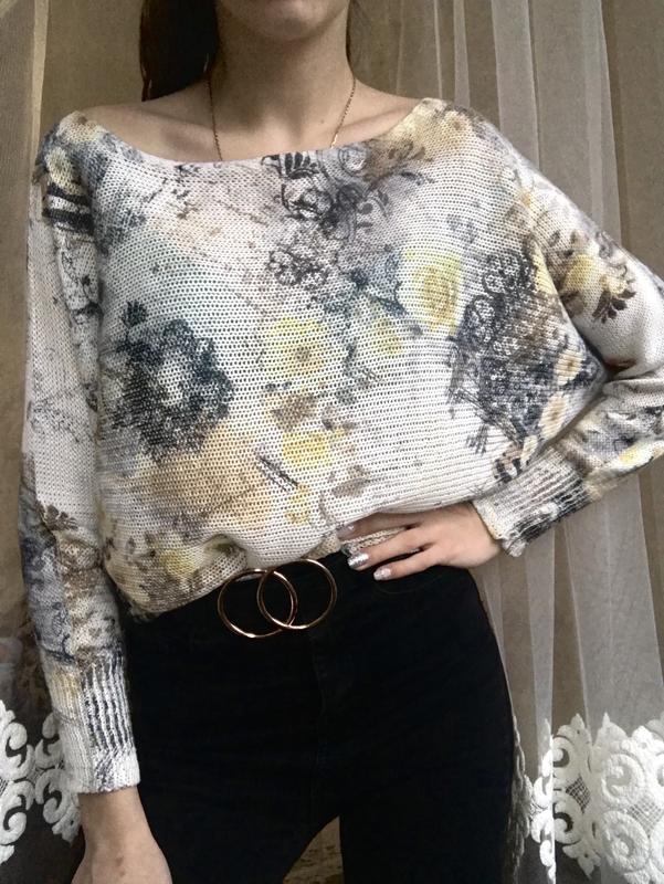 Миленькая кофточка вязаная нитками идёт на размер XS-S , длина 48 см, длина рукава 56 см, в груди и талии как оверзайз