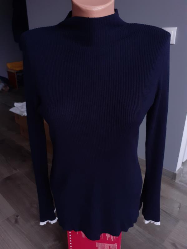 М'який,наряденький светрик з розкльошеними рукавчиками.Заміри: довжина по спинці 58, ширина під пахвами 48,плечі 40, довжина рукава від плеча 62