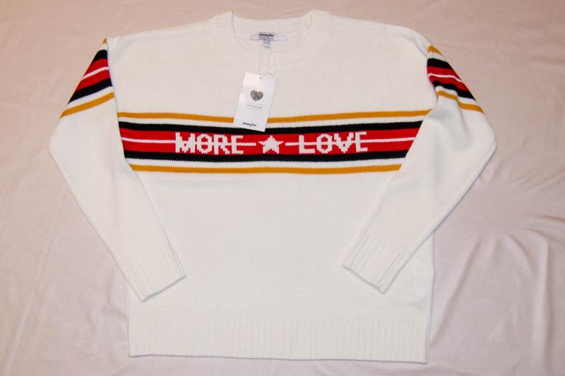 Свитер оверсайз французского молодежного бренда Jennyfer. За счет оверсайза подойдет на ХС, С, М. Цвет молочный Длина 56см Плечи ширина между швов рукавов 56см Ширина груди 55см Длина рукава 45см