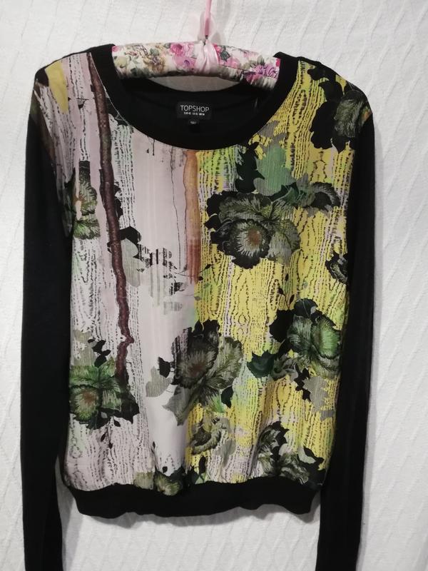 Свитер очень мягкий, перед свитера принтованный, спинка чёрная,размер указан 42.пог 53,длина рукава от плеча 65,плечи 44,длина изделия 55.