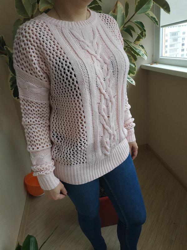 Нежно розовый и очень приятный к телу свитерок. На 50-52 размеры подойдёт . Длинный , но можно укладывать и на талии и покороче будет смотреться тоже хорошо . Какие интересуют замеры узнавайте , напишу. Длина изделия в свободном состоянии 68 см. Длина рукава от шва 58 см , но плечо спущено , поэтому подойдёт на длину рукава 62-63 см. Ширина 56 см ( под подмышками). Очень красиво смотрится, если Ваш размер меньше : как оверсайз свитер.