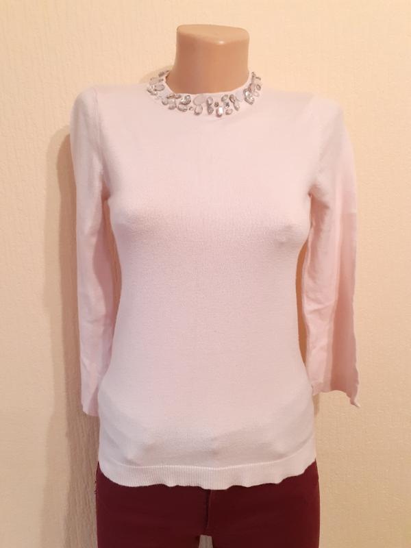кофта ніжно розового кольору. декорована стразами. рукав три четверті.розмір Xs-S.
