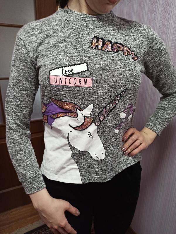Милая кофточка с красивым принтом, подойдёт на размер S, подростку или на худенькую девушку. Мягкая и приятная к телу. Размер указан 146-152, но смотрите мои мерочки. Большемерит немного. Плечи-45 пог-48 Длина-54 Рукав приспущеный 51 Турция производство.