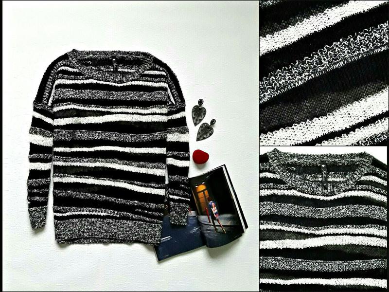Полосатый свитерок от Influence. Размер на бирке 8.Ширина 53 см,длина 69 см.Рукав 59 см от горловины. 89% acril ,11% polyamide .Cостояние 5