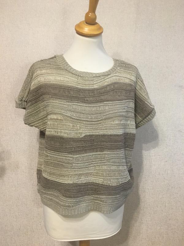 Укорочена кофточка в ідеальному стані,дуже комфортні в носінні,можна носити замість футболки з джинсами.Склад 75%акрил+23%бавовна+1%нэйлон,вказаний розмір S,але я носили на М,дивлячись реальні заміри,враховуйте,що кофточка йде укороченою і широкою))) Реальні заміри: довжина від плеча до низу 55см, плече від горловини 27см, ширина 59см. Дефектів немає.