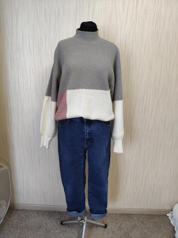 Мягкий свитер , хорошей длины , есть катышки , удобный в носке , скрывает недостатки , можно как хл так и лис , на оверсайз