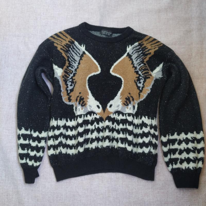 очень стильный свитер , мягкий, теплый состав : 67% акрил 13 % шерсть 12% нейлон 6% вискоза 1% ангора 1% эластан размер 8