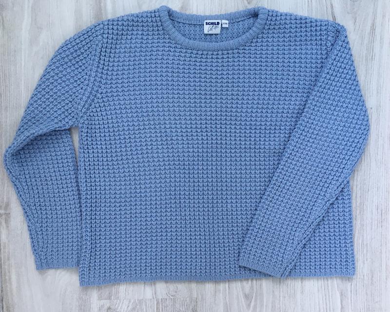Актуальный свитер красивого небесного цвета} Идёт чуть укорочённым} Мягкий и приятный к телу} Вязка мелкая, но красивая} Состояние отличное} Замеры по запросу}