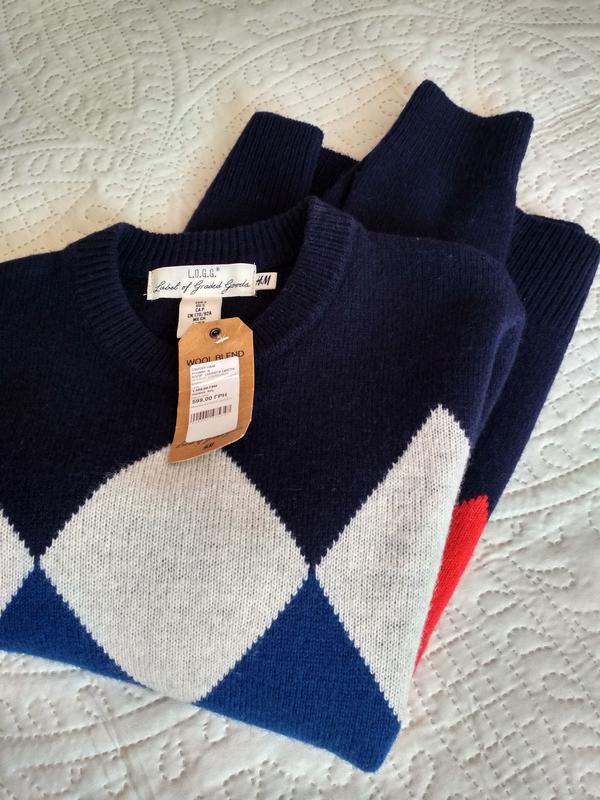 Новый, с биркой шерстяной свитер из коллекции Wool Blend, указан размер S, хорошо смотрится и на S, и на М. Стильный принт, основной цвет - темно синий. Покупали за 600, продаю за 400грн.Новый!!!