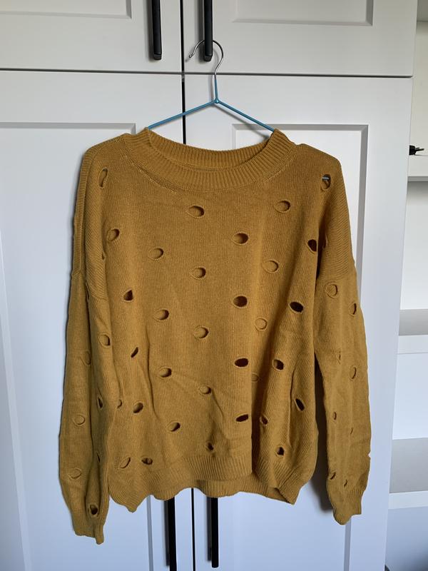 Свитер в дырочку, очень стильный, горчичного цвета, Италия, One Size, сезон осень-зима
