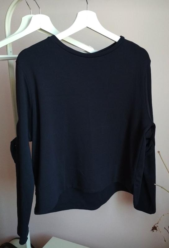 Красивая Кофта синего цвета, в размере М, хорошо подходит и на S. Новая! Интересное решение рукава(фото) очень красиво смотрится. Спереди чуточку укороченная, с таким патентом из основной ткани.(фото)Сзади лёгкая трапеция там есть складка(фото) Ткань красиво подающая, смотрится обалденно! Подходит ко всему! Цена 350грн.