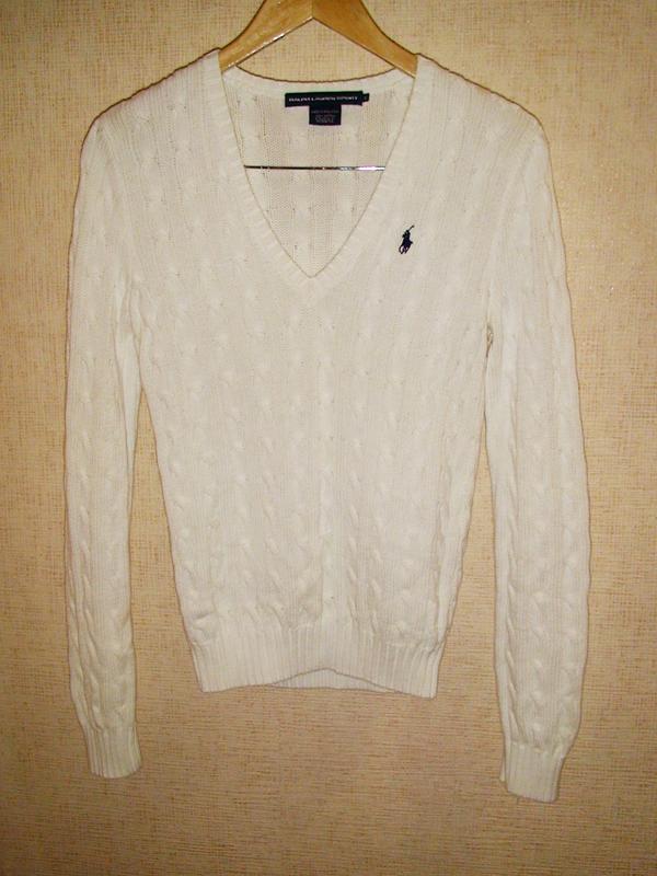 Свитер оригинал коттоновый белый с вырезом крупной вязкой в косы. Плечи- 40, грудь- 45; РУКАВ- 50,65; длинна-57, вырез-18