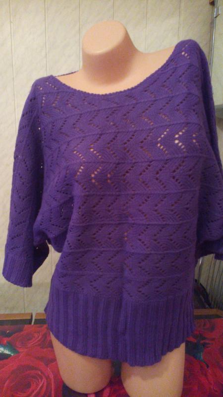 Красивый благородный фиолетовый цвет.20%-коттон;80%-акрил.Замеры:Рукав --"Летучая мышь"--от середины шеи-85;ОГ -минимум 110;длина-60.