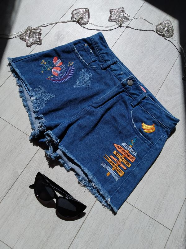 Джинсовые шорты с вышивкой.