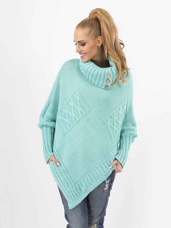 Теплый асимметричный свитер свободного силуэта, украшенный оригинальной вязкой. Изделие с длинным рукавом «летучая мышь» и объемным высоким воротником с пуговицами. Воротник и рукавная манжеты ребристые. Практичная и удобная модель, которая всегда актуальна, вне зависимости от модных тенденций. Бренд Makadamia (Польша). Пончо представлены в двух цветах, новые, без бирки.