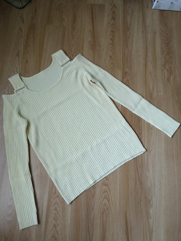 Идеально мягкий свитерок в рубчик с красивыми плечами, все бирки срезаны, качество и состояние очень достойные. Длина по средине спинки 57 см, плечи 40 см, бретели ширина 5 см, рукав от выреза 57 см, подмышки 44, очень хорошо тянется, низ 38, тянется до 60 см.