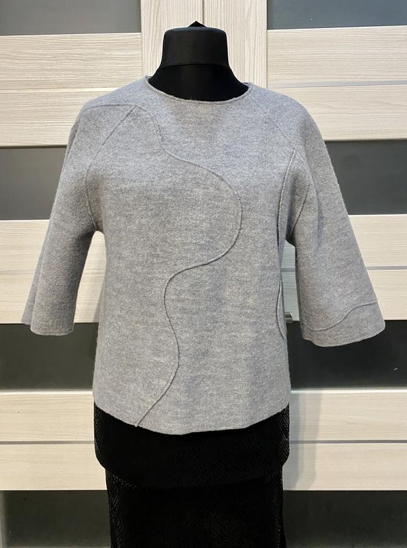 Шикарний вовняної блузон відомого виробника COS, застібається на блискавку ззаду, декорований рельєфними лініями. Рукав реглан. 100 % шерсть Дуже стильний. Заміри: ПОГ 52 Довжина виробу 57 Довжина рукава з плечем 50 см Без торгу Дивіться всі мої оголошення