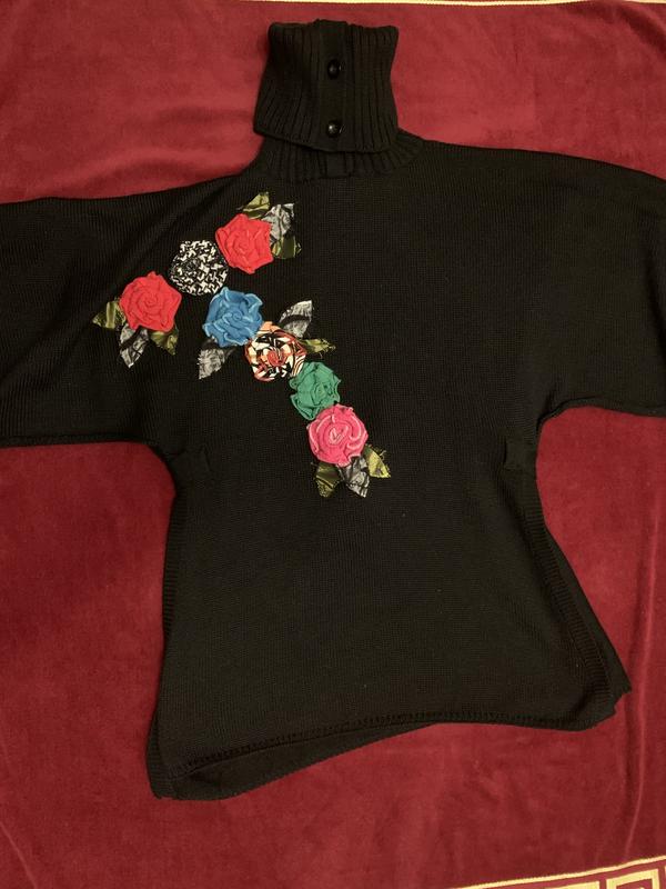 Трикотаж відмінної якості , підійде під будь-який стиль . Розмір універсальний , за рахунок зав'язок . Заміри скину за запитом . Ексклюзивна модель . Троянди не аплікація , а реально ручна робота .