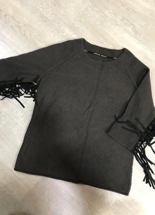 Хороший вовняний светр Ззаду декоративна бахрома з шкір.заступника Колір: сіро-коричневий