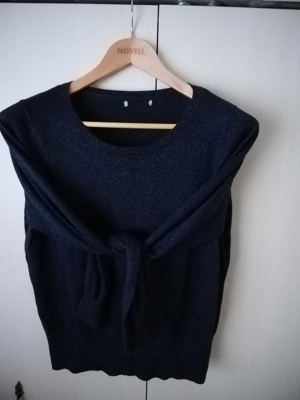 Свитер, темно-синего цвета с едва заметной люрексовой ниткой, смотрится очень красиво. Размер 38-40, дл. 60,ПОГ 55, рукав 64. Немного тянется.