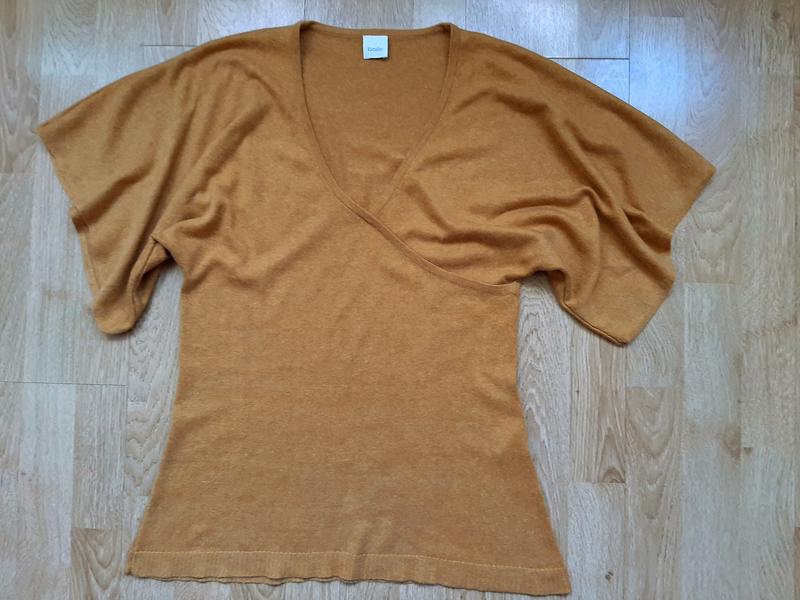Яркий свитер интересного силуэта. Прекрасный состав ткани. Под рукавами - 42, рукав от горловины - 35, длина - 64 см. Без недостатков.