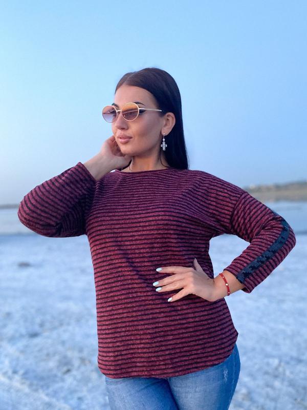 Кофточка с лампасом Модель # р15287 Цена- 350 грн Размер - 50-52,54-56,58-60 Ткань- ангора софт принт+ пайетка Цвет - марсал,джинс ,бутылка,пудра