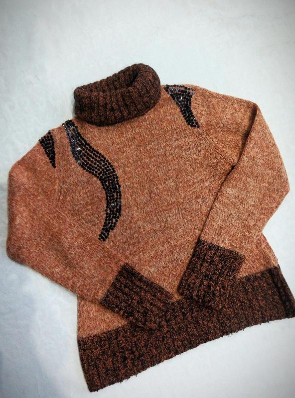 Очень теплый свитер в отличном состоянии. Длина 60 см, полуобхват груди 44 см, по плечам 38 см, длина рукава 64 см.