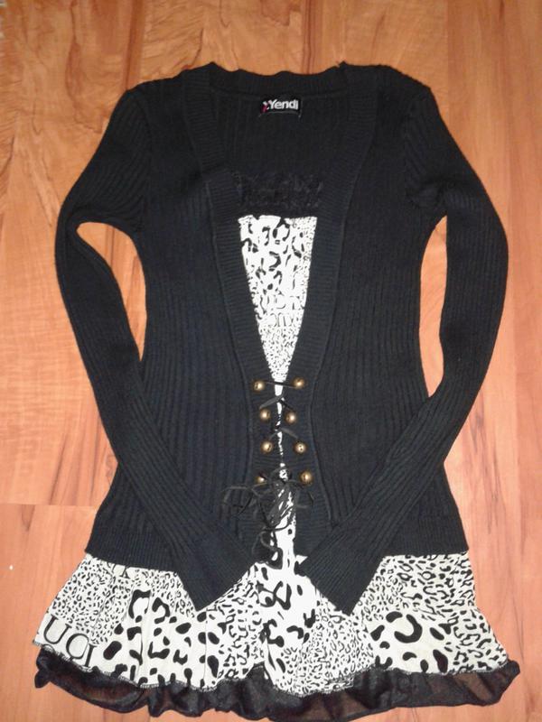 новый свитер плюс туничка,материал приятный к телу(65%катон),хорошо тянется не мнется,красиво смотрится под легинсы,размер S,M.,без дефектов.цвет насыщенно черный