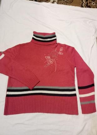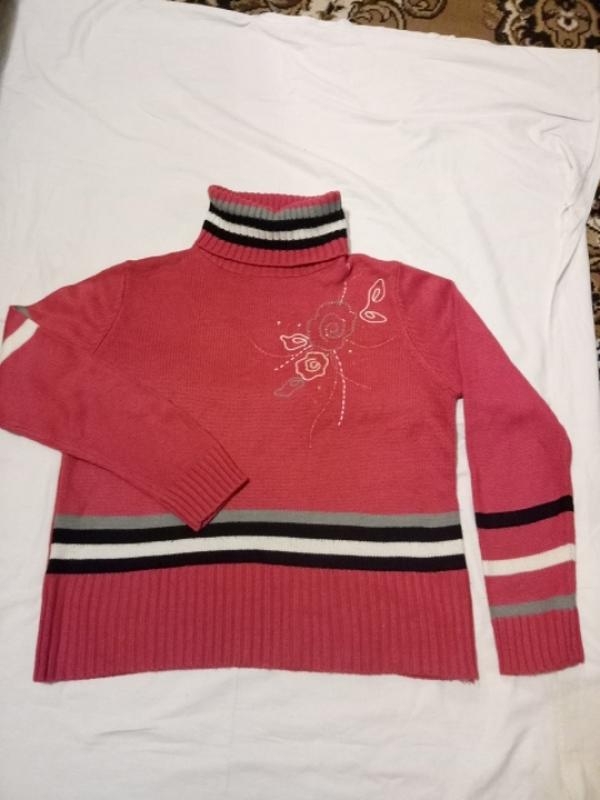 розовый с вышивкой, мягкий, размер М-L. замеры:плечи39, длина54, рукав 59,грудь 52