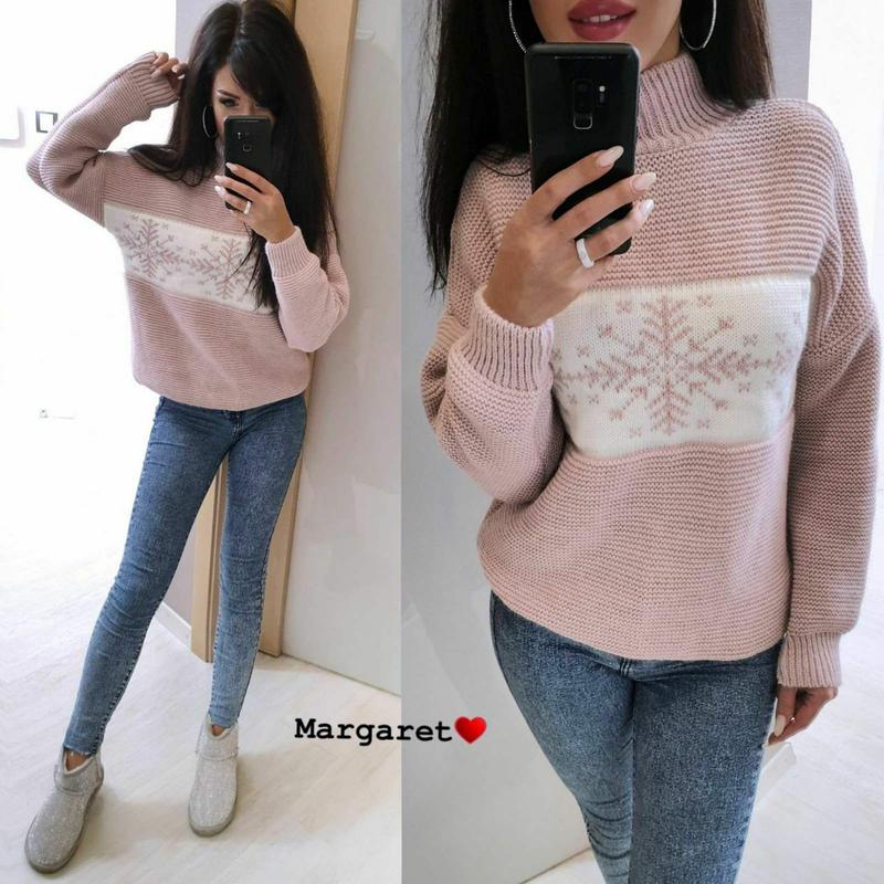 Свитер Снежинка ❄ margaret Машинная вязка — 50% шерсть, 50 акрил Размер единый 42-46 Снежинки с люрексовой нитью Цвет капучино, серый, пудра, голубой 630 грн.