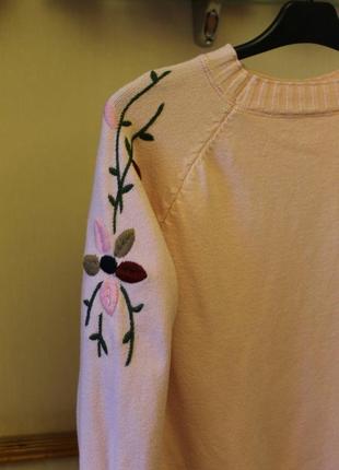 Красивый теплый свитерок нежно розового цвета. На рукавах вышивка.