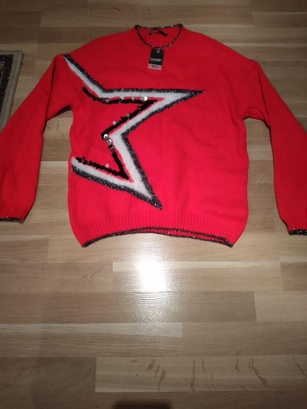 Куплена на официальном сайте.Очень мягенькая и теплая.Замеры: длина по спинке 61 см; ПОГ 49 см; длина рукава от горловины 71 см.Нарядная кофточка за счет люрексовой ниточка на шее и рукавах.