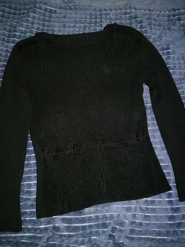 кофта черная с шнуровкой на плечах и поясе длина до пояска 40, полностью 55 ширина 45 рукав 50