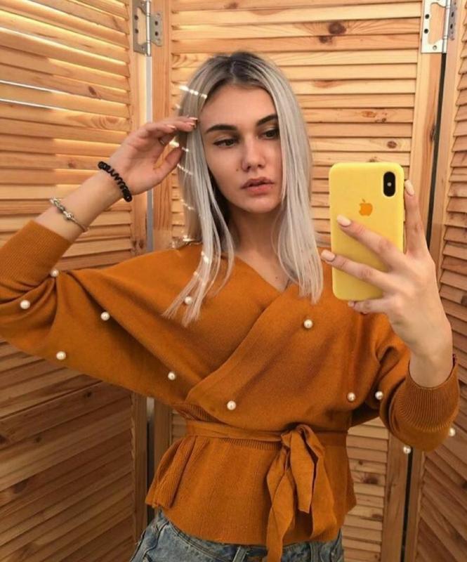 НОВИНКА Кофта с жемчугом фото реал размер универсал( регулируется) мягенькая вязка универсал Фабричный Китай