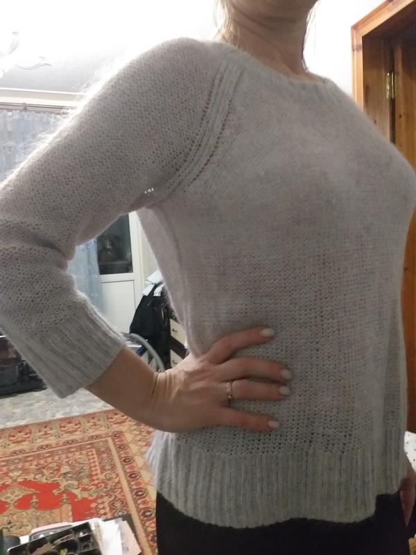 Серенький махеровый свитер, теплый, длина 58, ПОГ 50, рукав от горловины 62.
