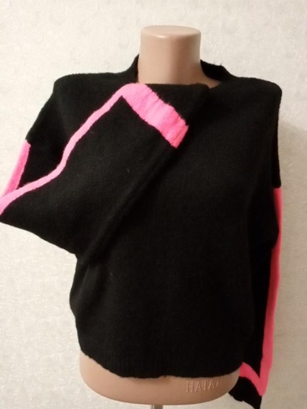 свитер короткий черный, на рукавах яркие розовые вставки, длина 50, рукав 53, плечи 58