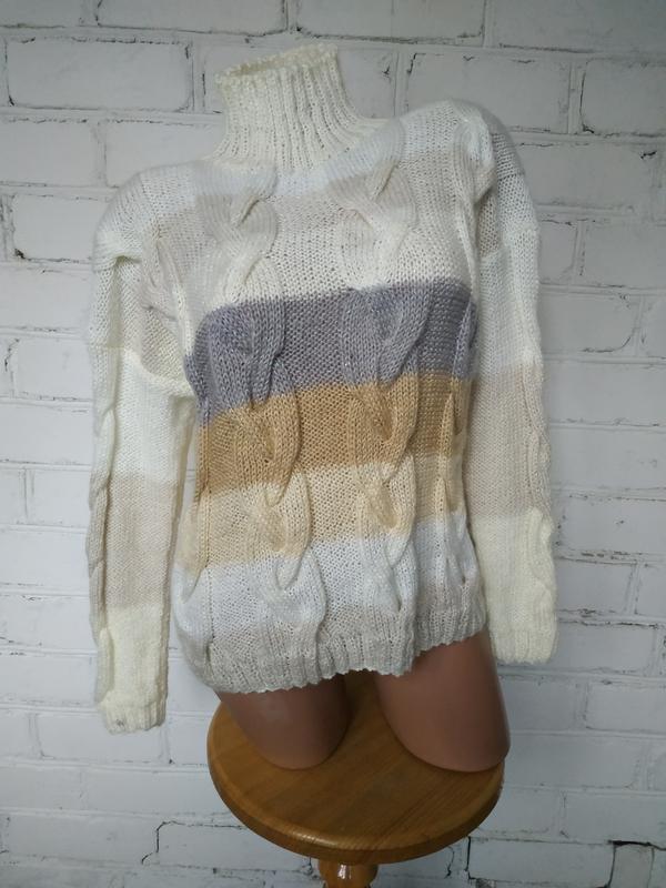 Свитер с косами с шерстью и люрексом. Ручная работа. Можно стирать в машинке на деликатных режимах. Длина от плеча 53 см, ширина по груди 49 см, плечи спущены 56 см, рукав от плеча 44 см. 100%предоплата на карту ПриватБанка, доставка за счёт покупателя УкрПочтой, Новой почтой, Джастин