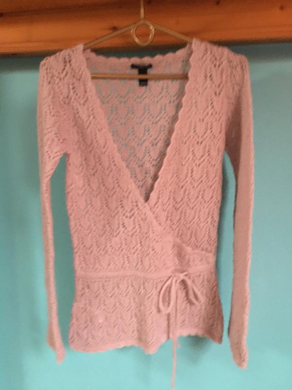Кофточка ажурна манго, дуже тепла з додаванням мохеру, цікава модель з запАхом. Колір ніжний персиковий, пудовий, як на останньому фото